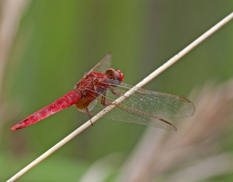 Die Feuerlibelle gehört zu den Libellenarten, welche grosse Strecken zurücklegen können. So wandert die Feuerlibelle im Sommer aus dem Mittelmeerraum nach Mitteleuropa. Das Männchen ist aufgrund seiner roten Farbe klar vom goldbraunen Weibchen zu unterscheiden.
