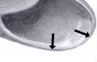 Betrachte die Mündung des Gehäuses. Bei wenn der Rand verdickt ist, spricht man von einer "Lippe". Dies ist ein wichtiges Bestimmungsmerkmal. Bei jungen, noch im Wachstum befindlichen Schnecken ist diese Stelle aber stets dünn, manchmal auch durchsichtig und sehr verletzlich.