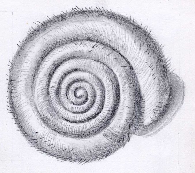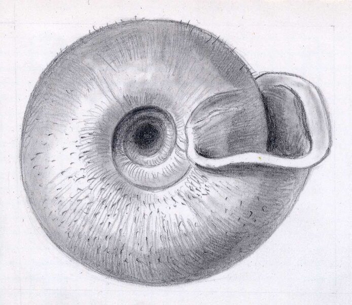 auf einer Ebene aufgerollt, wie ein aufgerollter Gürtel; mehrere Wülste an der Mündung