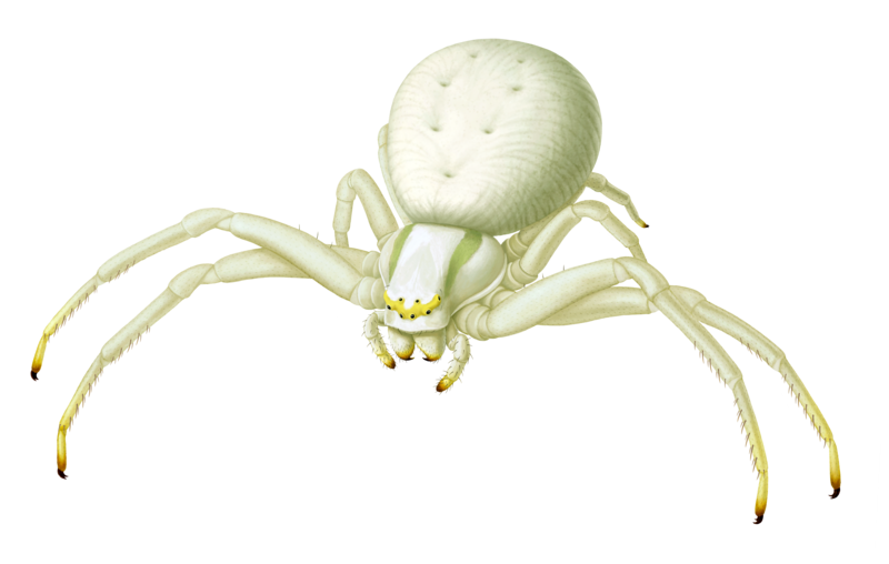 Die ausgewachsenen Weibchen können ihre Körperfärbung der Umgebung anpassen, dies dauert allerdings einige Tage. Oft findet man die hervorragend getarnten Tiere, weil ihre ausgesaugten Opfer unter der Blüte baumeln.