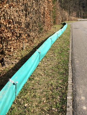 Zu den natürlichen Gefahren sind mit dem Menschen ganz viele neue Gefahren dazu gekommen. Für die Frühlaicher wie Grasfrosch, Erdkröte und Bergmolch sind Strassen eine ganz grosse Gefahr. Zu ihrem eigenen Schutz wandern die Tiere meist in der Dämmerung. Genau zur gleichen Zeit sind viele Pendler mit ihrem Fahrzeug unterwegs zur Arbeit oder auf dem Heimweg vom Arbeitsplatz. Bei Temperaturen knapp über dem Gefrierpunkt benötigen die Tiere oft mehrere Minuten, um eine Strasse überqueren zu können.