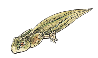 Die Larve hat Hinterbeine. Die Vorderbeine haben sich in Hauttaschen entwickelt und brechen plötzlich durch. Das Tier stellt die Verdauung auf tierische Nahrung um.